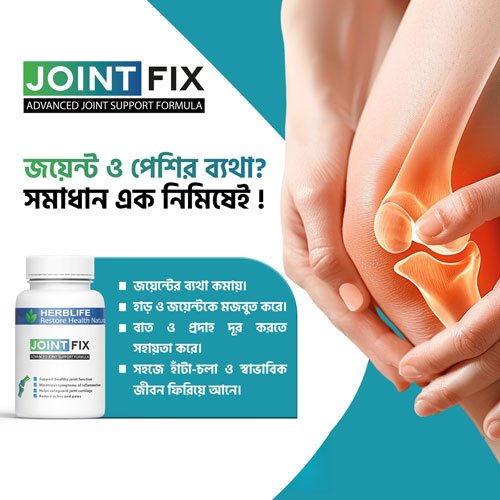 Joint Fix একটি স্থানীয় চিকিৎসা; যা ১০০% প্রাকৃতিক হার্বাল উপাদানের সংমিশ্রণে তৈরি। বিভিন্ন জয়েন্ট সমস্যার সাথে সম্পর্কিত অস্বস্তি দূর করতে এটি তৈরি করা হয়েছে। এটি পেশীর টান কমাতে এবং স্বাস্থ্যকর হাড় ও কার্টিলেজ টিস্যুর রক্ষণাবেক্ষণে সহায়তা করে। প্রাকৃতিক উপাদানের কারণে সেবনকারীরা এতে উপকার পাচ্ছে।